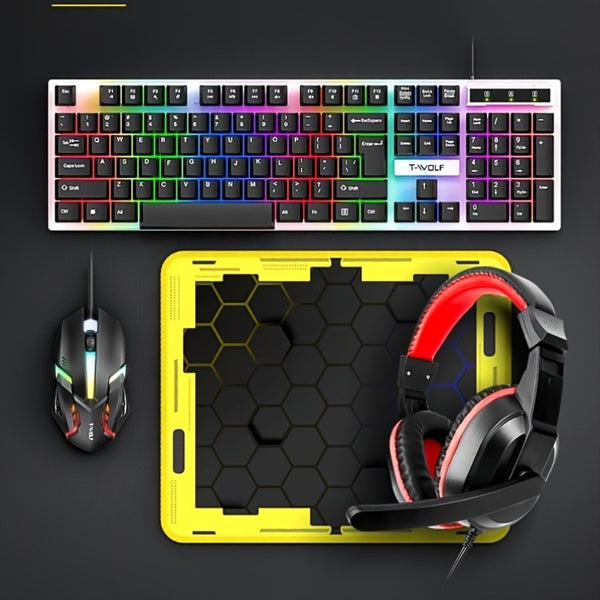Complete 4 in 1 Gaming Combo: keyboard, mouse, headset, and mousepad