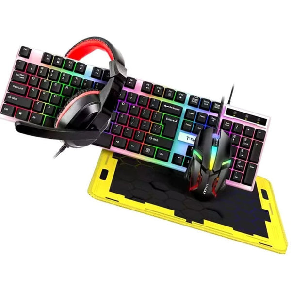 Take your gaming setup to the next level with the 4 in 1 Gaming Combo, a complete set designed for performance, style, and comfort. The 4 in 1 Gaming Combo includes a vibrant rainbow backlit keyboard, precision gaming mouse, immersive over-ear headset, and a smooth, anti-slip mousepad — giving you everything you need to dominate your digital battles.