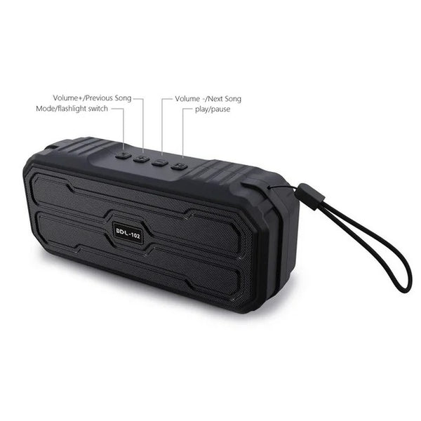 Stay entertained and prepared outdoors with the Mini Portable Outdoor Bluetooth Speaker with FM & Torch—your versatile audio and lighting solution.