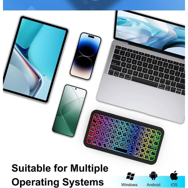 Featuring universal Bluetooth connectivity, the Ultra Light Slim Bluetooth Keyboard is compatible with iOS, Android, Mac OS, and Windows devices, making it a versatile choice for tablets, smartphones, laptops, and PCs. The 7-color backlit keys allow comfortable typing in any lighting condition, enhancing both style and functionality. The ergonomic, low-profile keys ensure a quiet and responsive typing experience, reducing strain during extended use.