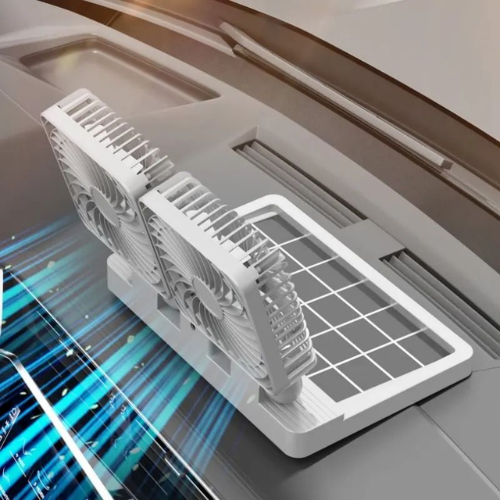 Experience powerful and eco-friendly cooling with the Double Head Solar Charging Fan, a versatile, energy-efficient solution designed for maximum airflow. Whether you're on a road trip, camping in the great outdoors, or seeking a refreshing breeze inside your vehicle, this Double Head Solar Charging Fan delivers optimal comfort. Featuring dual adjustable fan heads with 360° rotation, solar and USB charging options, and a compact, foldable design, it ensures cool air wherever you go. Engineered for quiet operation and long-lasting performance, the Double Head Solar Charging Fan is the perfect companion for outdoor adventures and everyday travel.