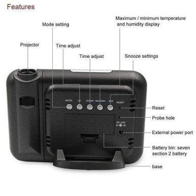 • Time Projection: The clock projects the time onto any wall or ceiling, making it easy to see the time from anywhere in the room.