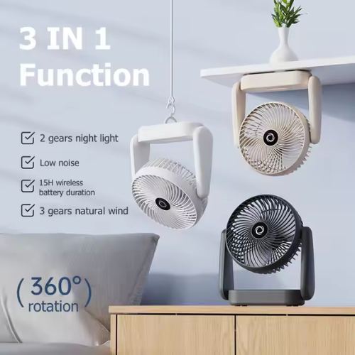 The Modern Desktop Cooling Fan is a compact and stylish cooling solution designed to provide powerful airflow while maintaining whisper-quiet operation. Featuring a brushless motor, this modern desktop cooling fan ensures efficient cooling without disruptive noise, making it ideal for offices, bedrooms, and workspaces.