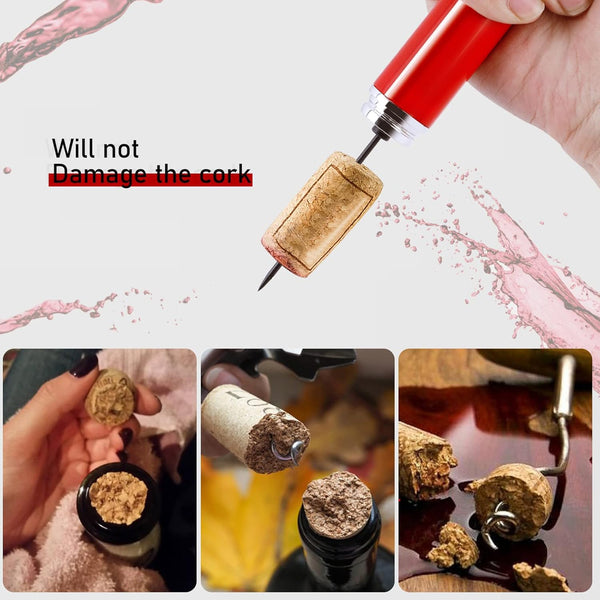 • Creative Pneumatic Design: Uses air pressure to safely and effortlessly push the cork out, ensuring no damage to the cork.