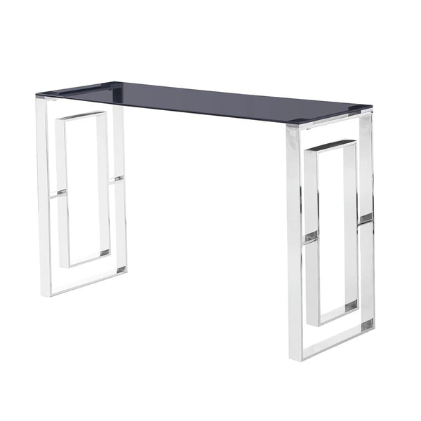 Enhance your entryway or living room with the sleek elegance of the PrimeNest - Ivy Glass Top Console Table. Featuring a durable silver stainless steel frame paired with a clear glass top, this console table is designed to showcase your favourite decorative items in style. The rectangular shape of the PrimeNest - Ivy Glass Top Console Table offers ample surface space for books, vases, plants, or other décor, making it a versatile addition to any contemporary home.