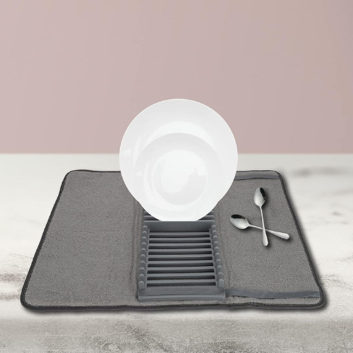 • Material: Microfiber (Drying Mat) & BPA-Free PP Plastic (Rack)