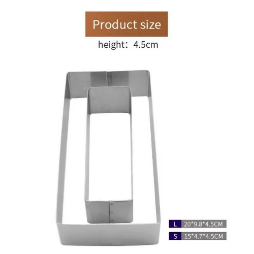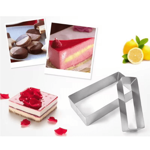 - Set of Two Rectangular Molds – The 2-Piece Stainless Steel Mousse Cake Mold Set includes two durable molds, perfect for crafting multi-layered cakes and elegant desserts.
