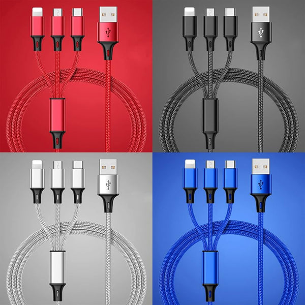 3 in 1 Charging Cable – USB to Lightning, Type-C, Micro USB