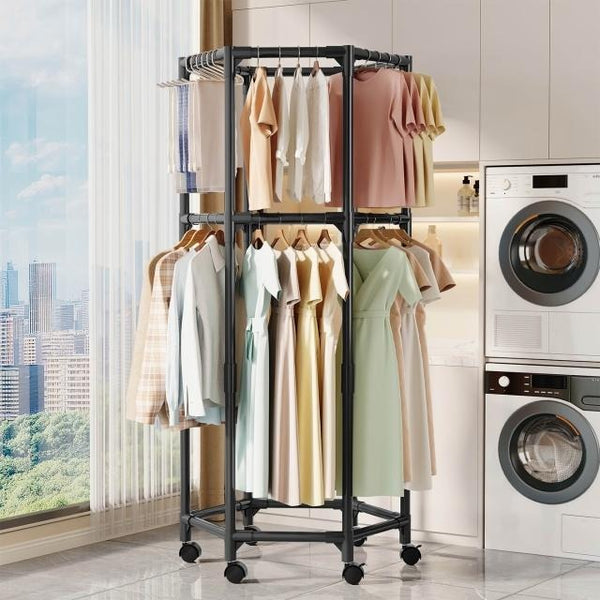The 360° Hexagonal Garment Display Stand is designed to bring both functionality and style to clothing presentation. With its unique six-sided frame, the 360° Hexagonal Garment Display Stand allows maximum hanging capacity while keeping garments organized and easy to browse. Built with durable materials, this stand ensures long-lasting use, while the rotating design provides smooth and effortless access from every angle. Perfect for retail shops, boutiques, or even home wardrobes, the 360° Hexagonal Garment Display Stand combines space efficiency with a modern design. Make your clothing collection stand out with the 360° Hexagonal Garment Display Stand.
