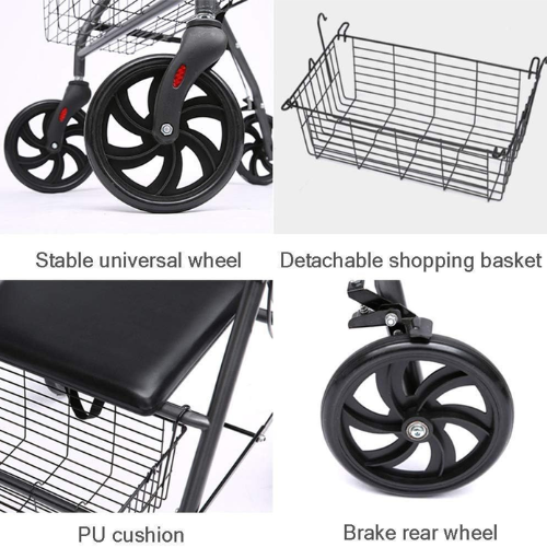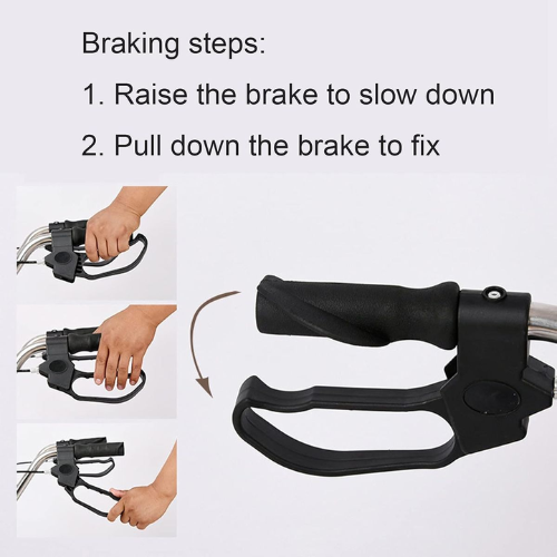 Equipped with ergonomic hand brakes, users can safely stop or control speed, reducing the risk of slips or falls. The padded seat with backrest provides a comfortable place to rest during long walks, while the under-seat storage basket allows for easy transport of personal belongings, groceries, or medical essentials.