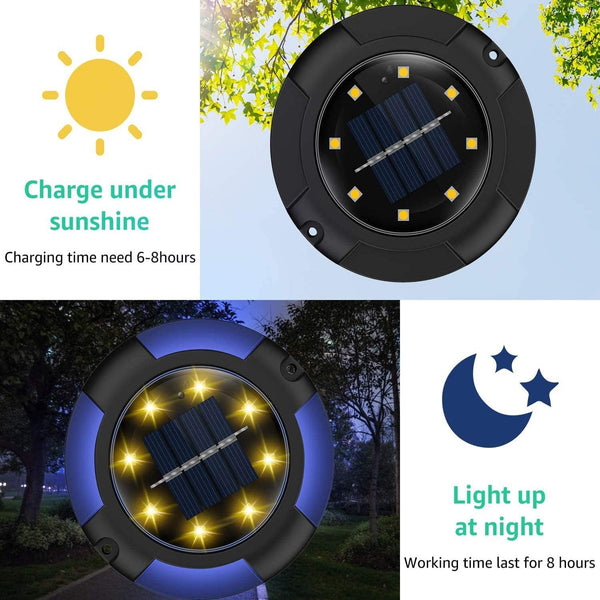 The Outdoor Waterproof LED Garden Path Lights provide bright, energy-efficient illumination for your garden, patio, or pathway. This 4-piece set features 8 LEDs per light and a built-in rechargeable battery 200mAh, delivering 8–10 hours of light after 4–6 hours of charging. The Outdoor Waterproof LED Garden Path Lights use high solar energy conversion for cost-effective lighting.
