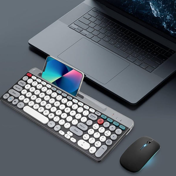 Take your workflow to the next level with the Portable Wireless Keyboard with Phone Slot, offering comfort, convenience, and seamless integration wherever you go.