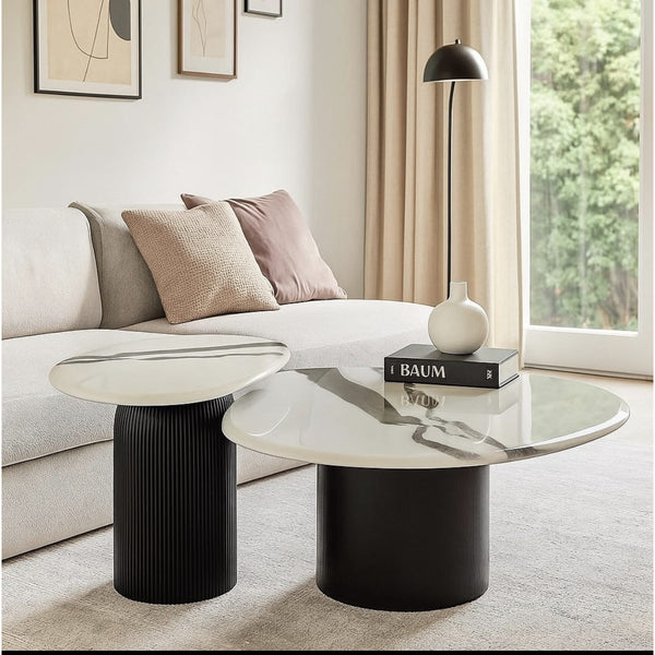 Transform your living space with the PrimeNest – Dana Nesting Coffee Table Set, a combination of modern design and functional elegance. This set of two tables features smooth, artistic tops paired with distinct textured bases, creating a unique visual appeal. The PrimeNest – Dana Nesting Coffee Table Set allows for flexible use: nest the smaller table under the larger one or use them separately as a coffee table and side table. Crafted with premium materials, the PrimeNest – Dana Nesting Coffee Table Set is both durable and practical, while its modern shapes and geometric bases make it a stylish focal point in any living room. Perfect for everyday use or entertaining guests, the PrimeNest – Dana Nesting Coffee Table Set combines artistry, strength, and versatility in one elegant design.