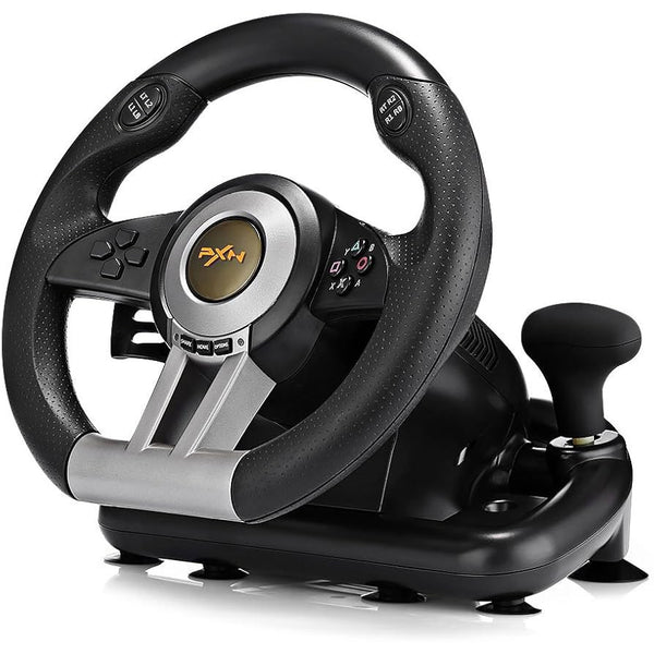 The Racing Steering Wheel with Pedal combines style and function with its all-in-one shape, making it a sleek addition to your gaming gear.